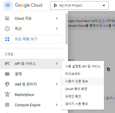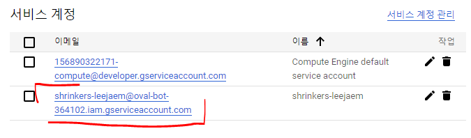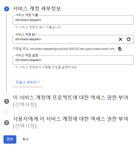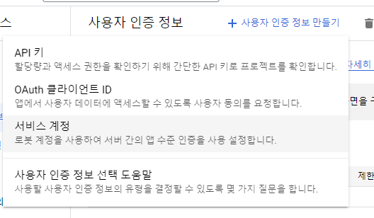 API > 사용자 인증정보 > 인증정보 만들기 > 서비스 계정