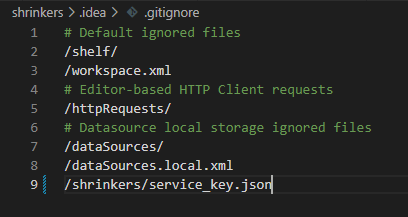 다운 받은 json 파일을 프로젝트 폴더 > shrinkers에 저장 > .gitignore에 경로 추가 ( 깃에 절대 올리면 안되는 파일이라고 함)