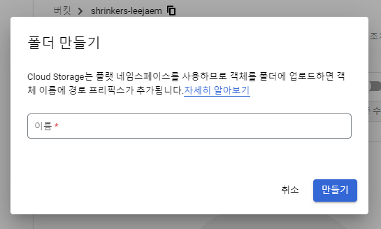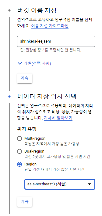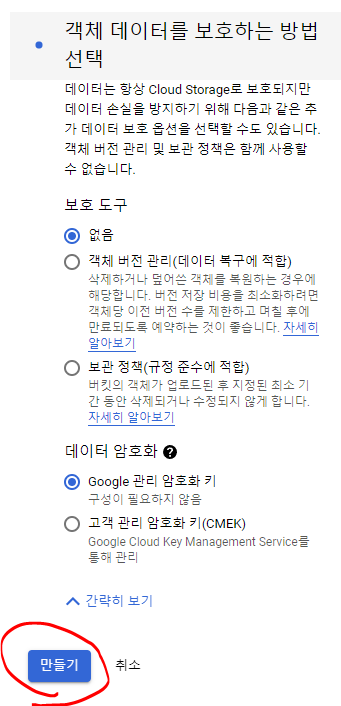 GCP > storege 검색 > 만들기