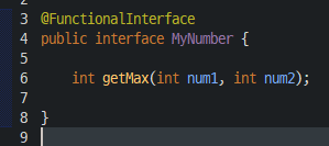 - 익명 함수와 매개변수 만으로 구현되므로 인터페이스는 단 하나의 메서드만을 선언해야함
