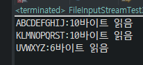 - 파일에서 바이트 배열로 자료 읽기 ( 배열에 남아 있는 자료가 있을 수 있음에 유의 )